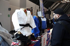 On continue la visite dans le hall par la boutique officielle Teddy Riner (photo lors de l'installation la veille du tournoi). 10% des ventes étaient reversé à l'institut Imagine.